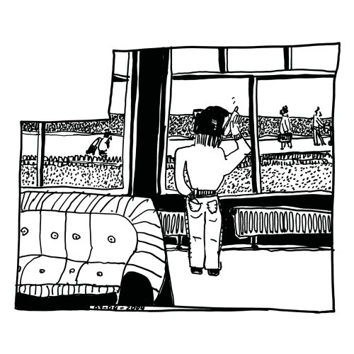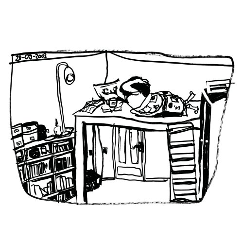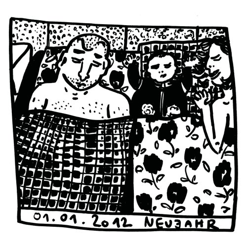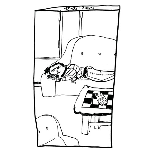 Any day now – Franziska Junge zeichnet Tagebuch wie Schriftsteller:innen eines schreiben: 2003 begann sie, auf einer großen Papierrolle jeden Tag ein Panel zu zeichnen, ein einziges Bild, das den Tag kurz zusammenfasst. Die schwarz-weißen Bilderfolgen erzählen keine einfache „Story“, sondern in der Zusammenschau der mehr als 2.500 Filzstift-Illustrationen ergibt sich der ganz große Rahmen – riesige Geschichtenbögen: die Schnittlinien einer Frauenbiografie zwischen Erwachsenwerden und Elternschaft, beruflicher Selbstverwirklichung und Welterkundung.