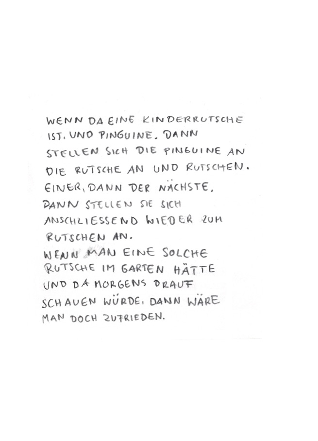 Hat irgendjemand irgendwann irgendwo gesagt, dass sich in einem Leben alles stetig verbessert? Oder besser verbessern sollte? Bis eben war sie davon ausgegangen, dass es sich – da ja immer eines auf dem anderen aufbaut – unvermeidlich verbessert. Oder verbessern sollte. Was für ein Druck. Das muss doch nicht sein. Das darf auch alles stagnieren oder sich verschlechtern.