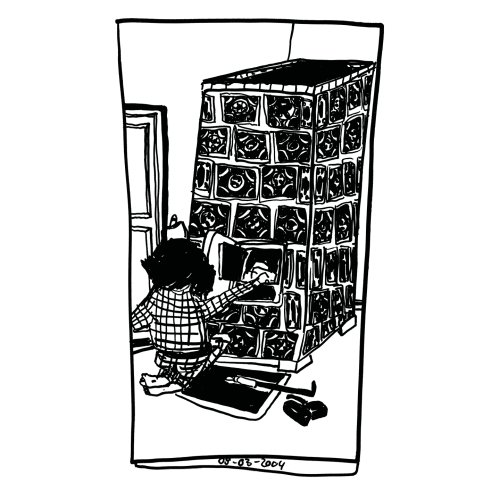 Any day now – Franziska Junge zeichnet Tagebuch wie Schriftsteller:innen eines schreiben: 2003 begann sie, auf einer großen Papierrolle jeden Tag ein Panel zu zeichnen, ein einziges Bild, das den Tag kurz zusammenfasst. Die schwarz-weißen Bilderfolgen erzählen keine einfache „Story“, sondern in der Zusammenschau der mehr als 2.500 Filzstift-Illustrationen ergibt sich der ganz große Rahmen – riesige Geschichtenbögen: die Schnittlinien einer Frauenbiografie zwischen Erwachsenwerden und Elternschaft, beruflicher Selbstverwirklichung und Welterkundung.