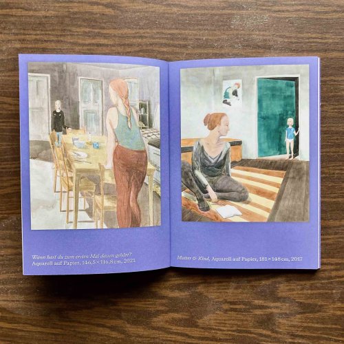 Freundschaften, partnerschaftliche Verstrickungen, Eltern-Kind-Verhältnisse: In Anna M. Kempes großformatigen Aquarellen geht es um Momente der Nähe und des Konflikts. Der Blick richtet sich auf die Fürsorge einander zugewandter Menschen.
