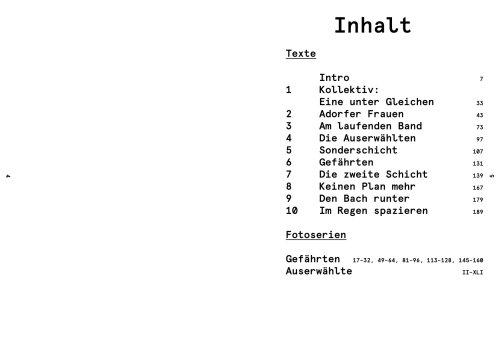In Chemnitz und Umgebung begegnen Lysann Németh bis heute Einkaufsbeutel, die aus Stoffresten dieser Regenschirme gefertigt wurden. So entstanden die Fotoserien „Gefährten“ und „Auserwählte“. Zehn Textcollagen aus zahlreichen Gesprächen mit den ehemaligen Adorfer Arbeiterinnen erzählen von Schirmherstellung und Sonderschichten, Kollektiv und Arbeitsalltag, Endkontrolle – und Abwicklung.